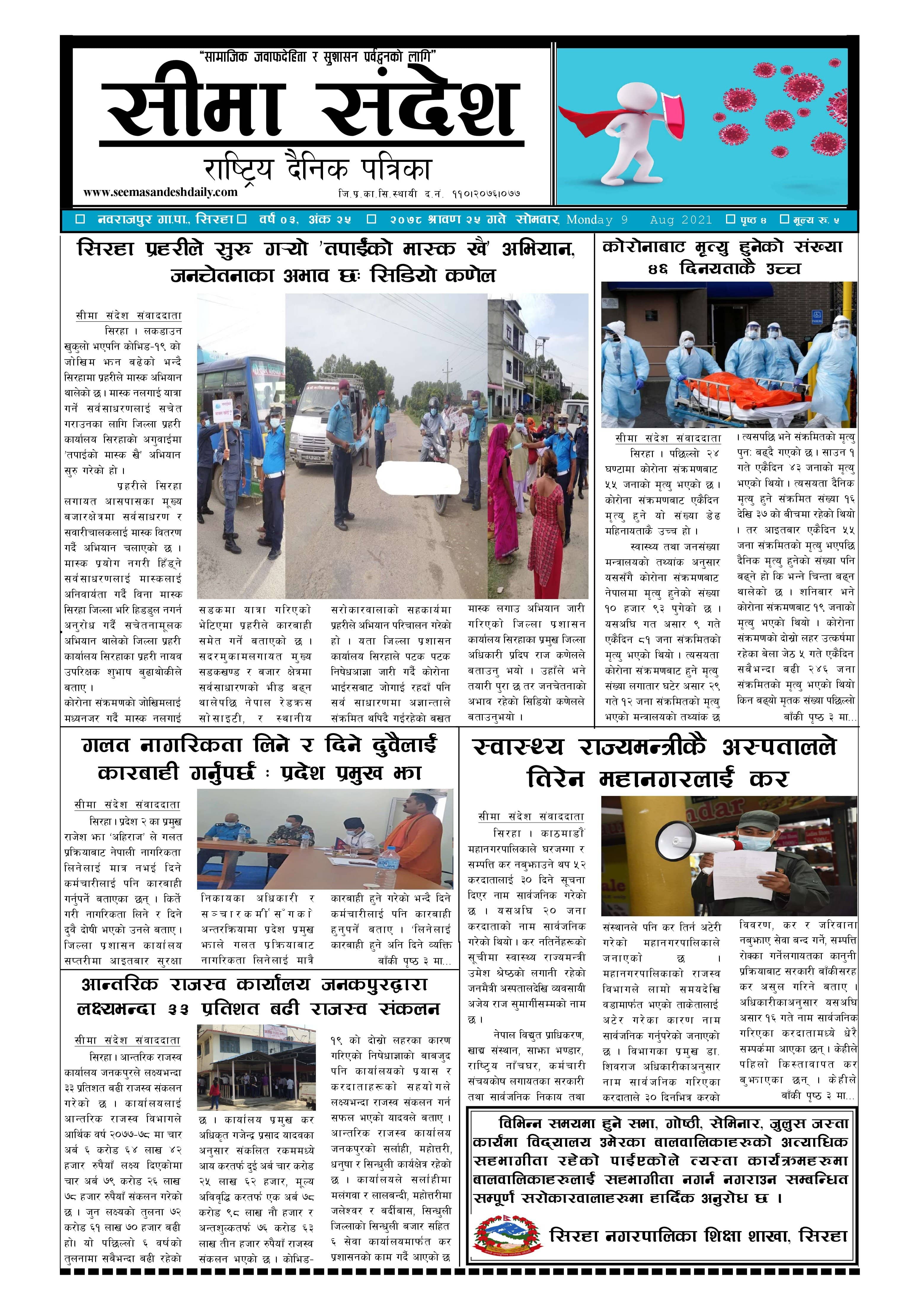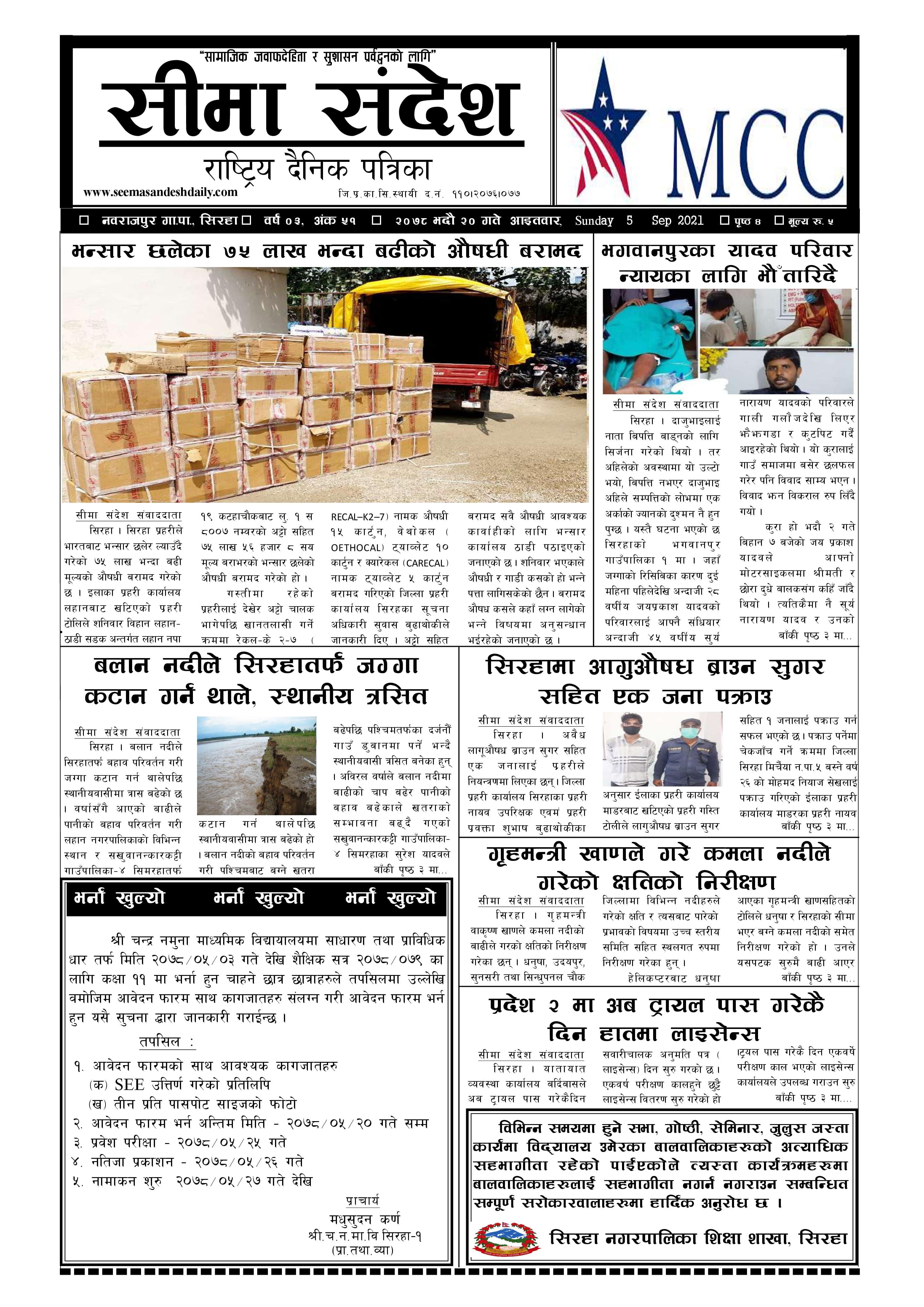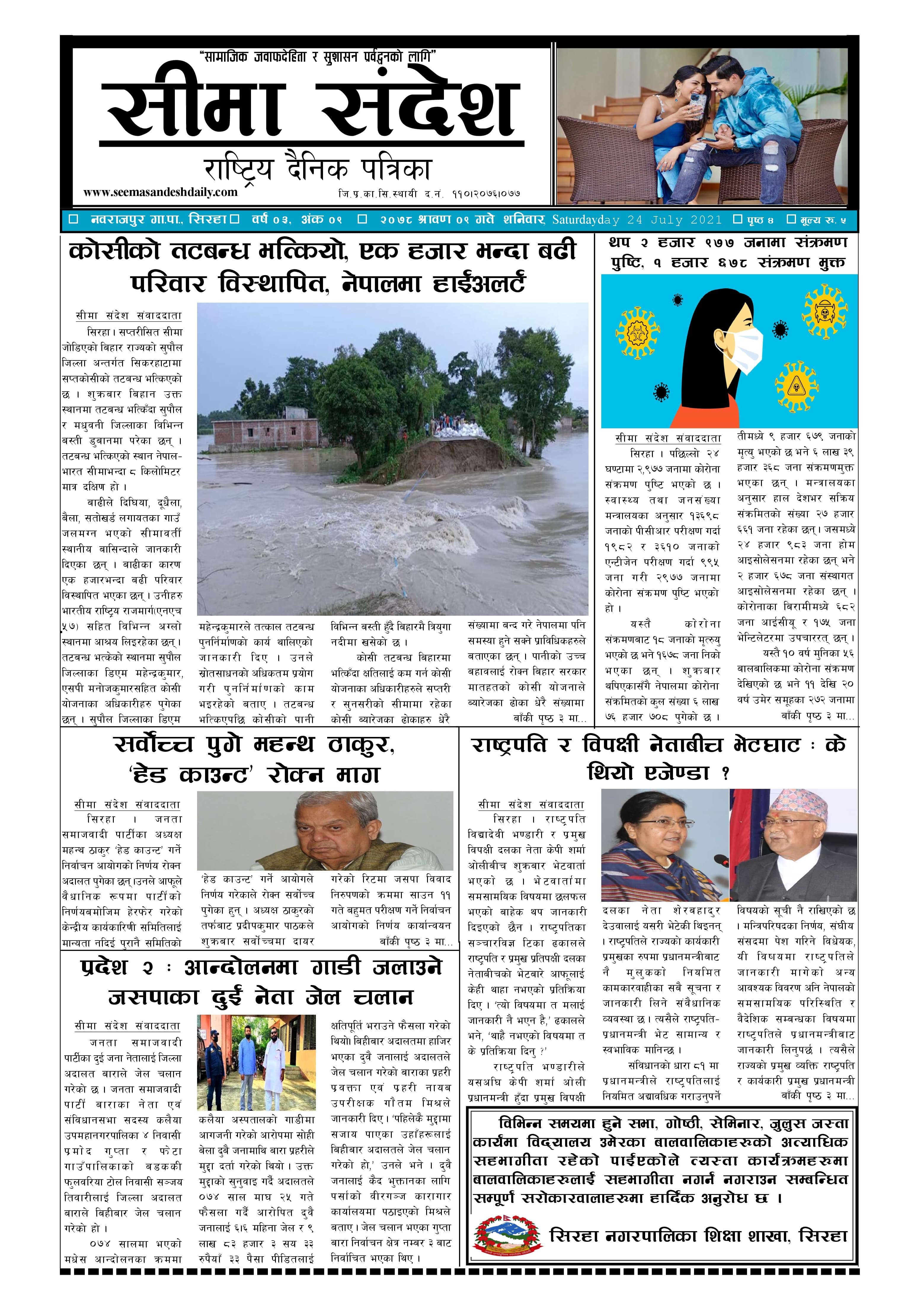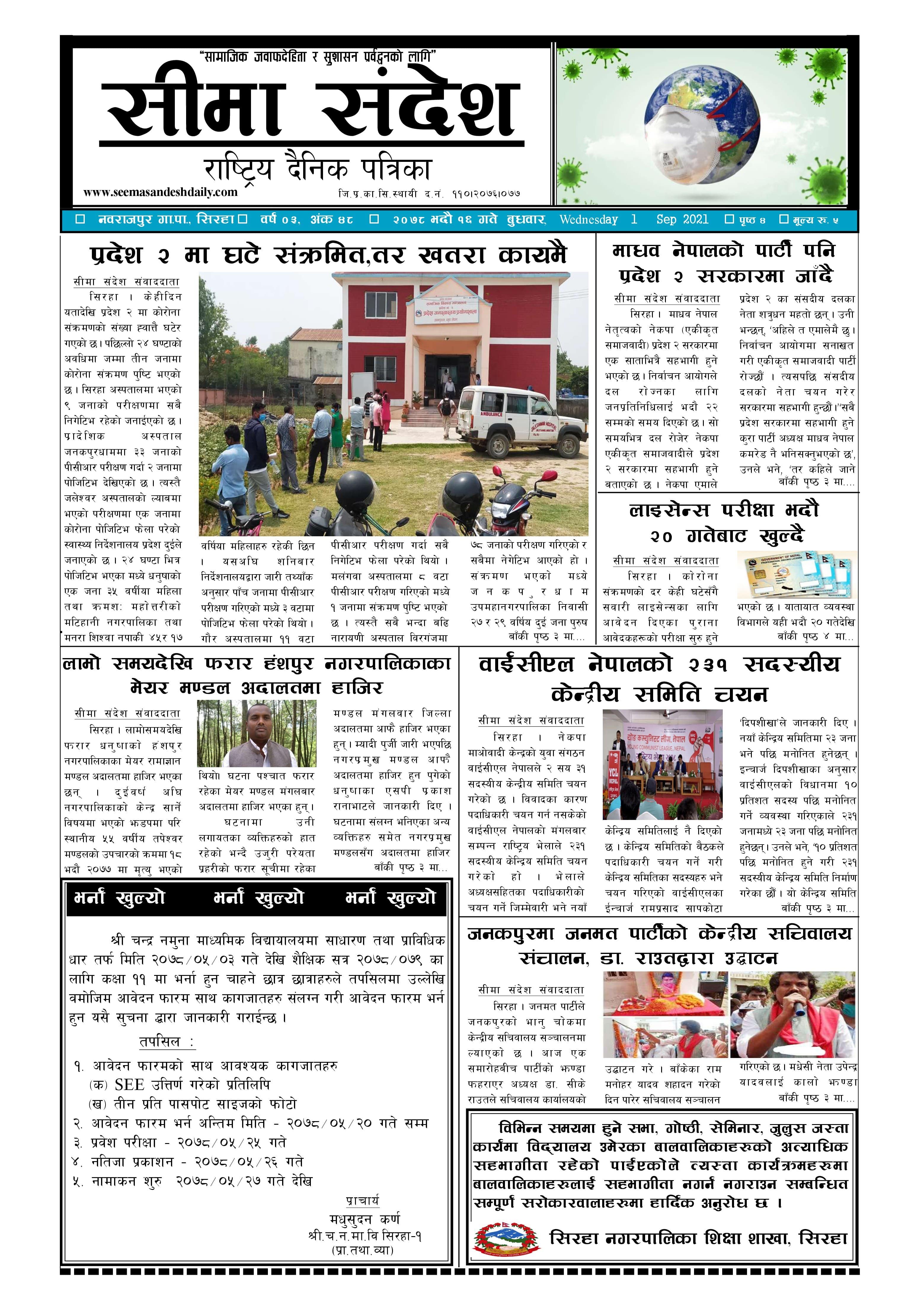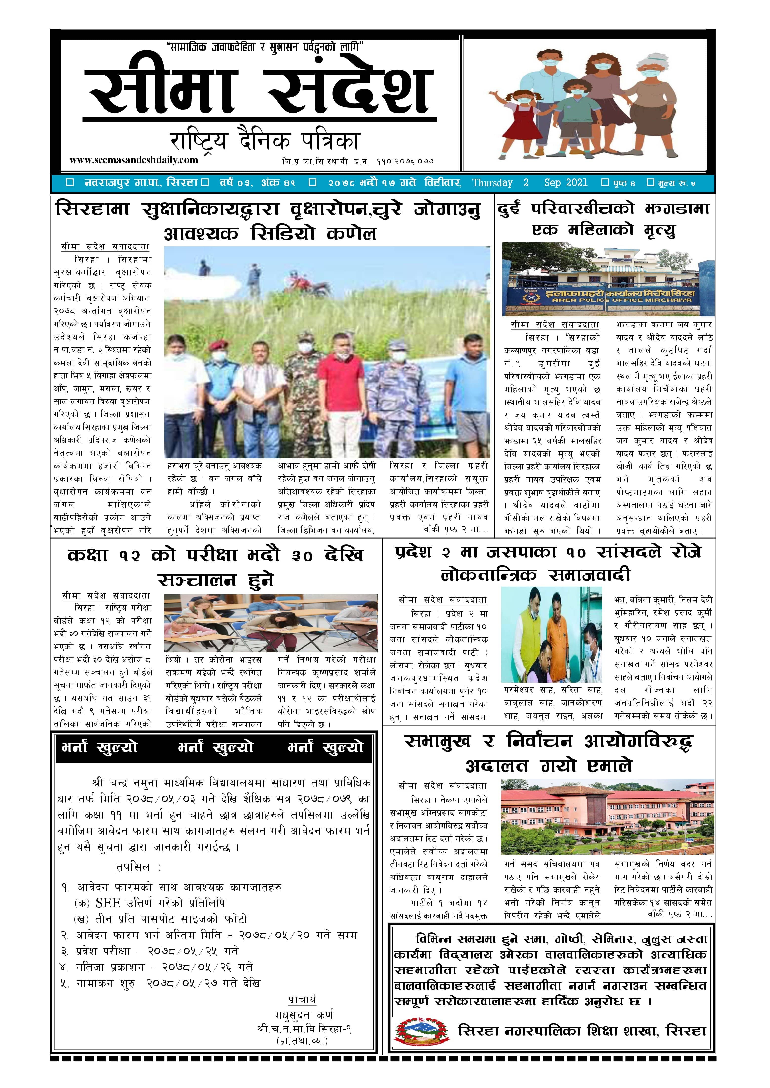 सीमा संदेश राष्ट्रिय दैनिक - 2078-04-09 शनिवार