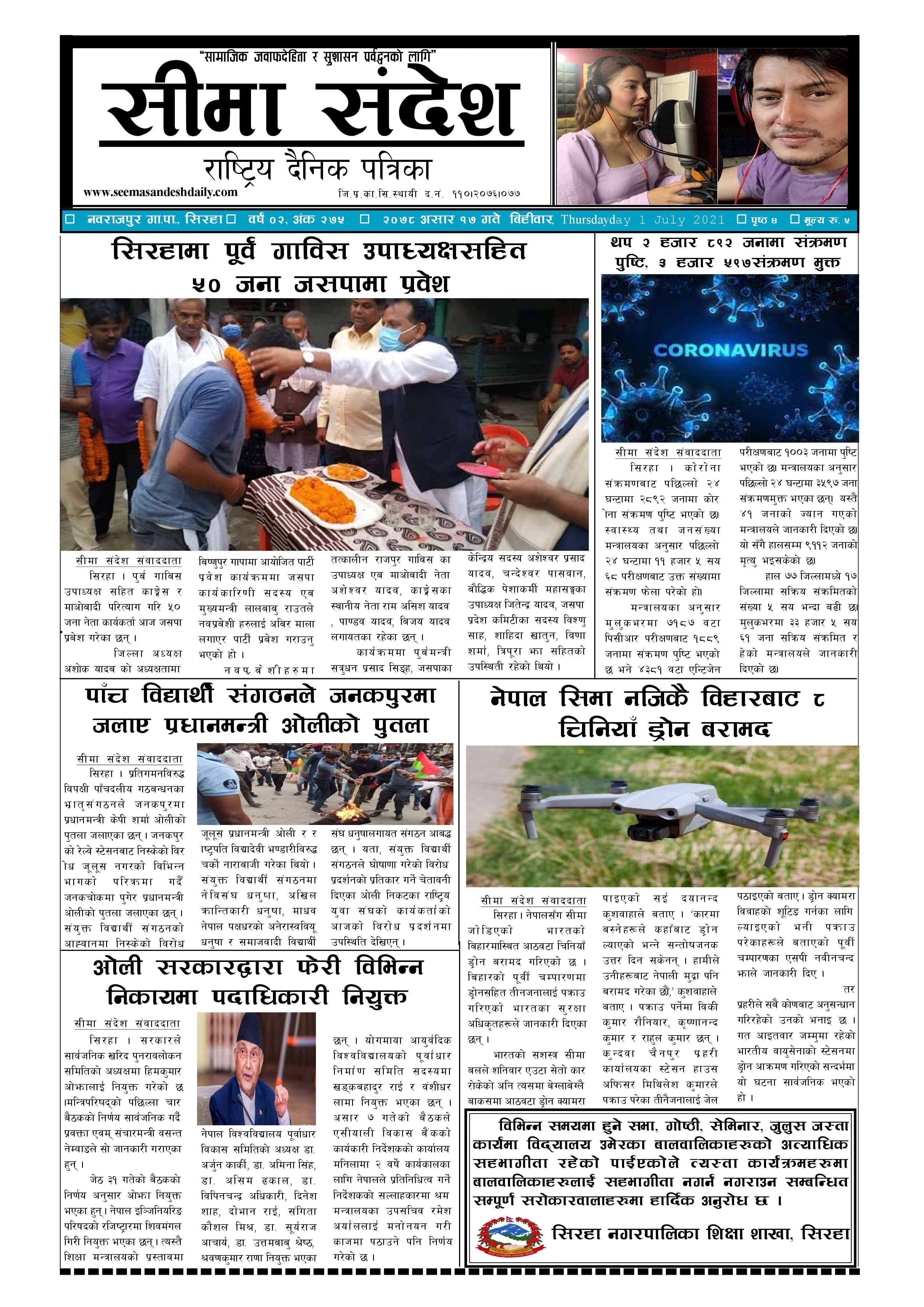 सीमा संदेश राष्ट्रिय दैनिक - 2078-04-18