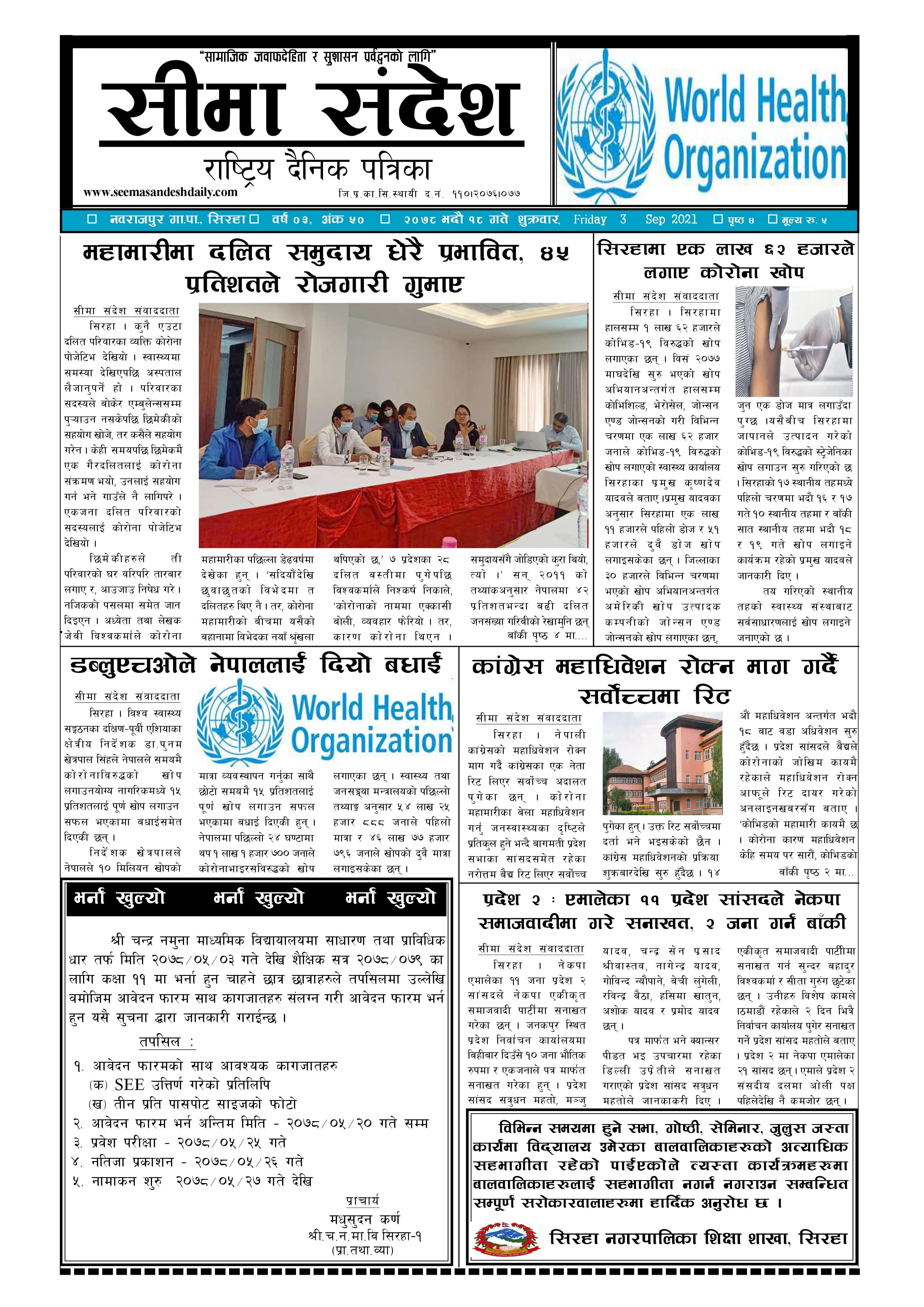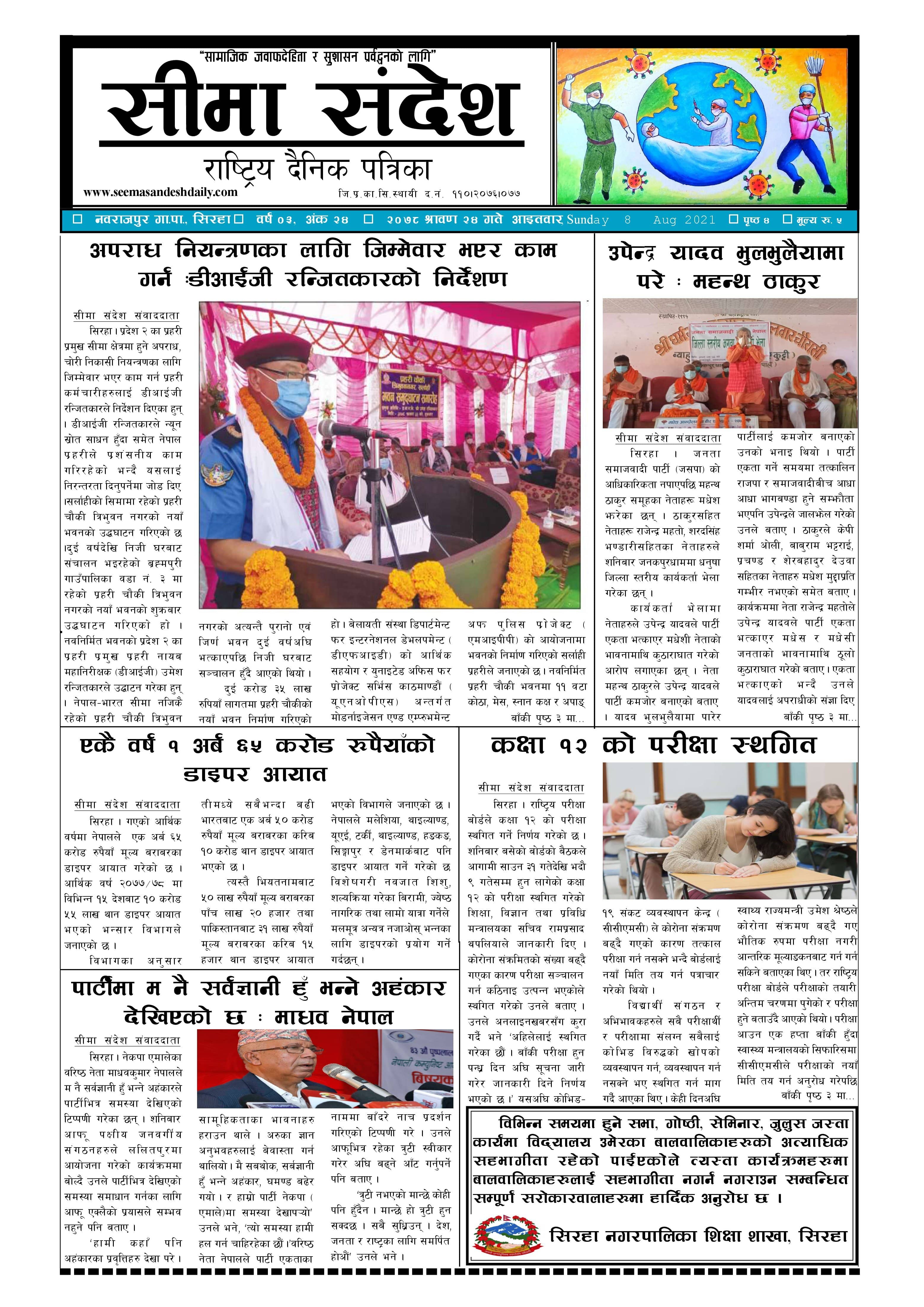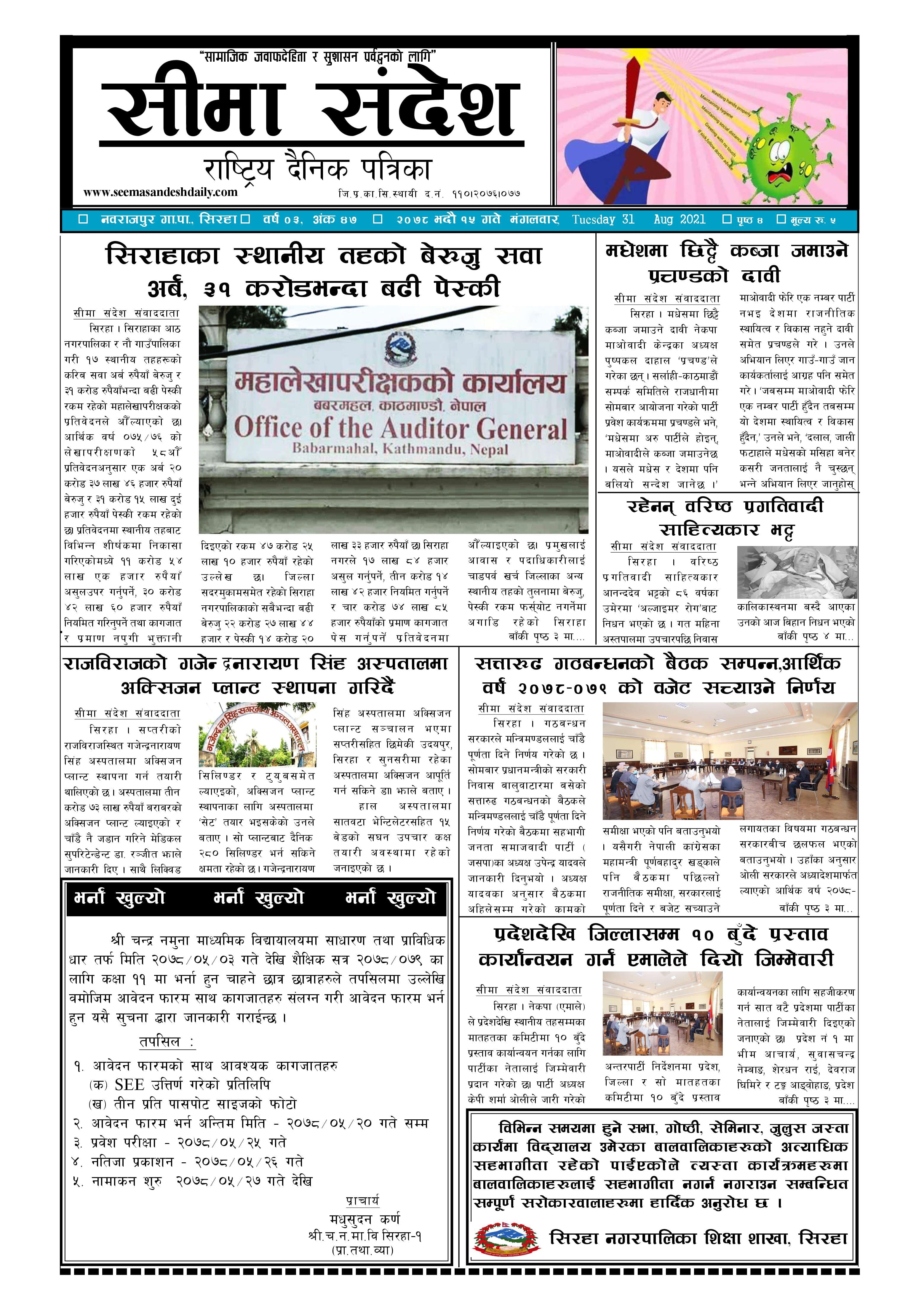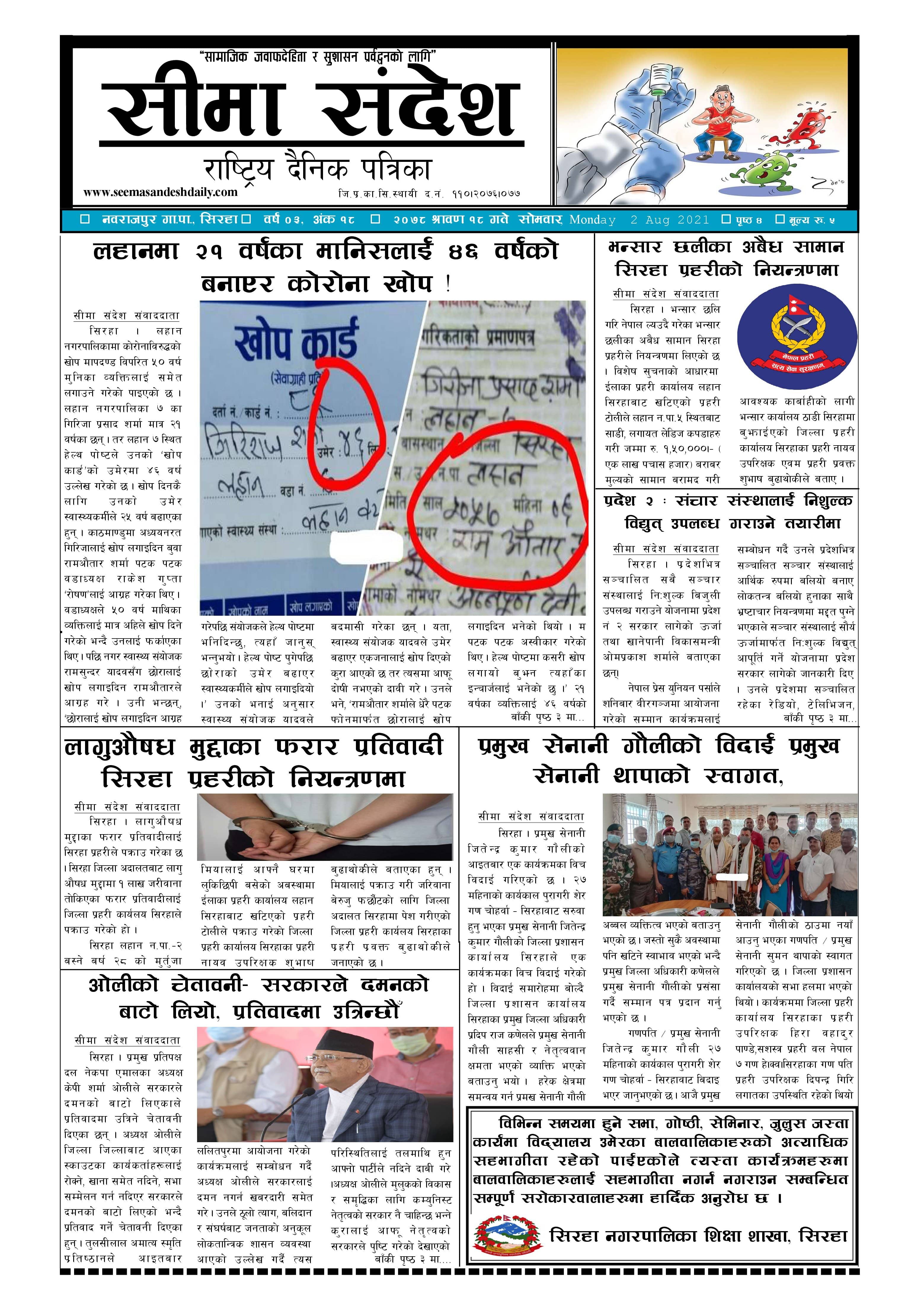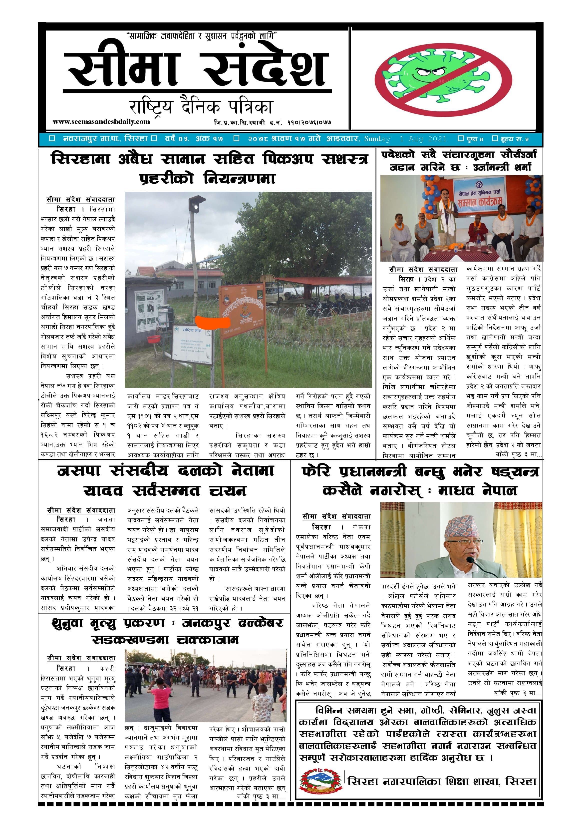 सीमा संदेश राष्ट्रिय दैनिक - 2078-04-19