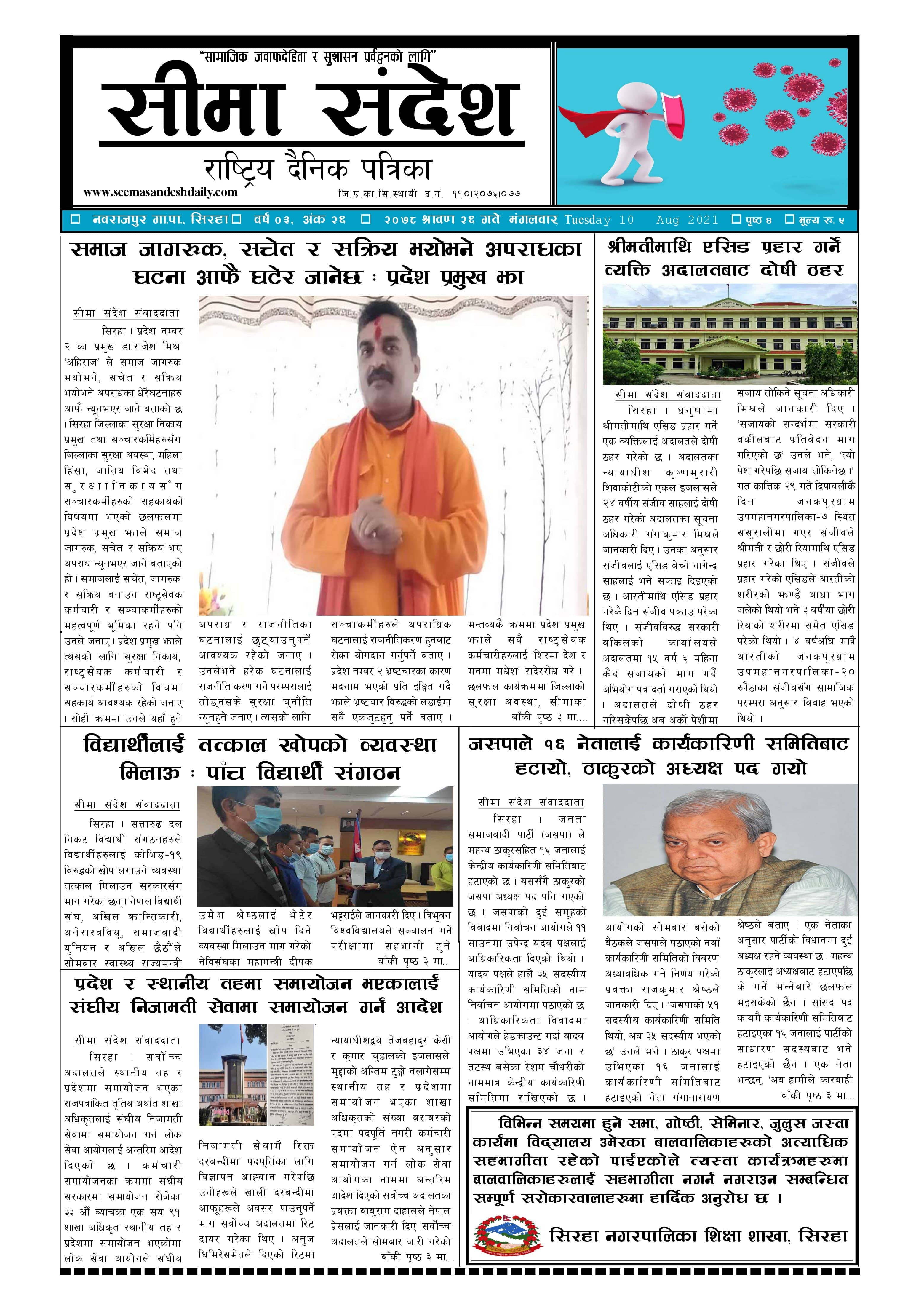 सीमा संदेश राष्ट्रिय दैनिक - 2078-04-26