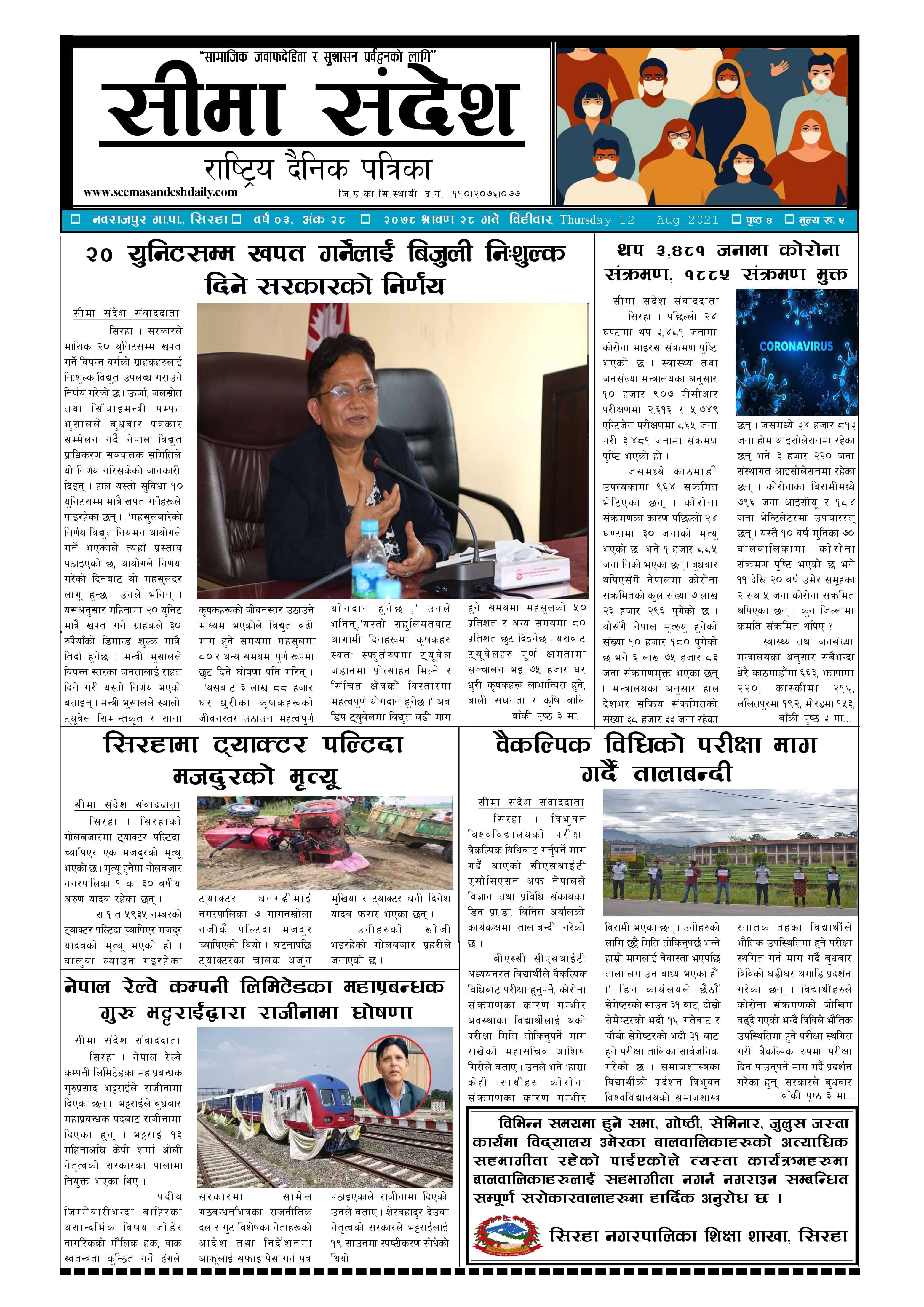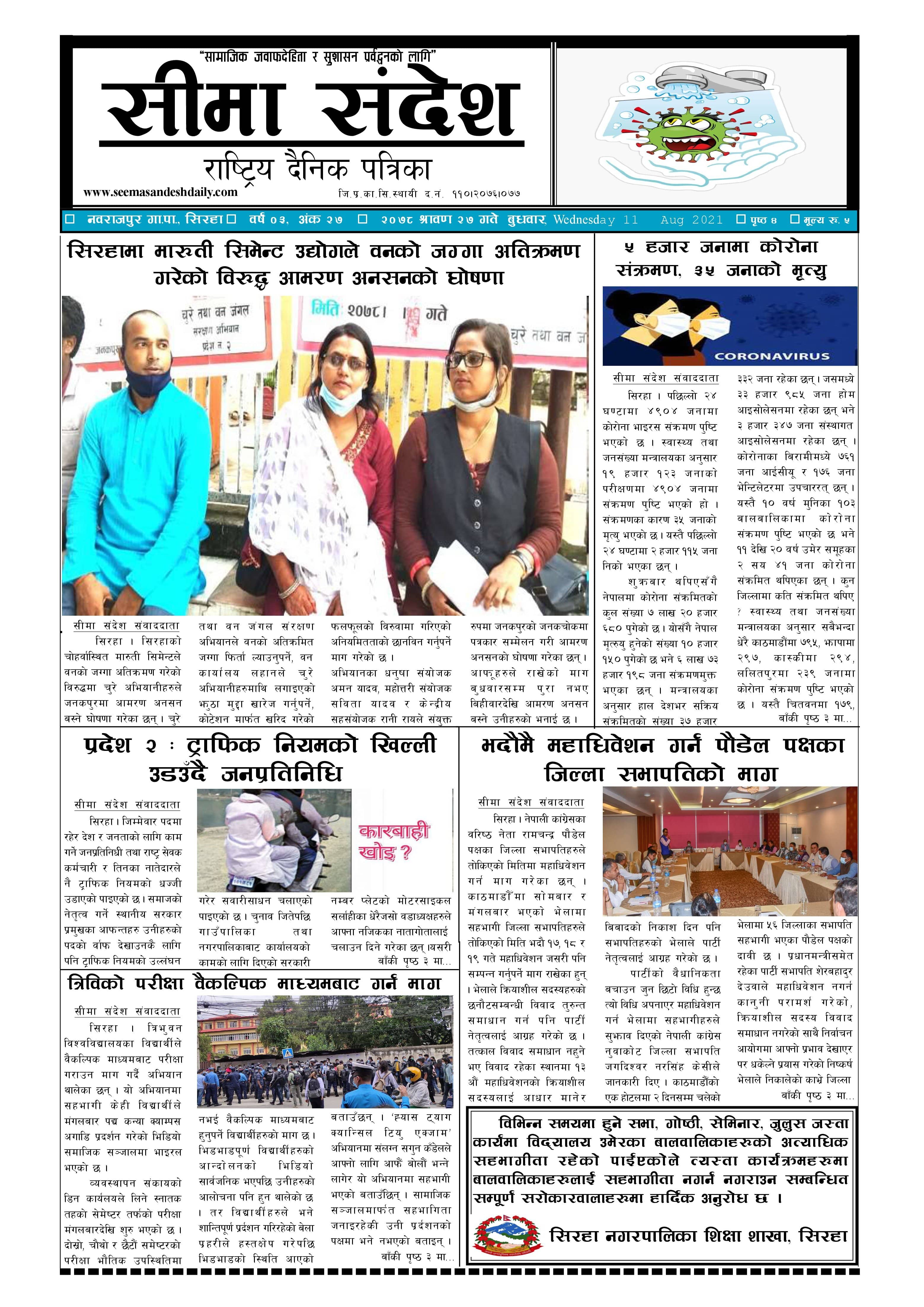 सीमा संदेश राष्ट्रिय दैनिक - 2078-04-28