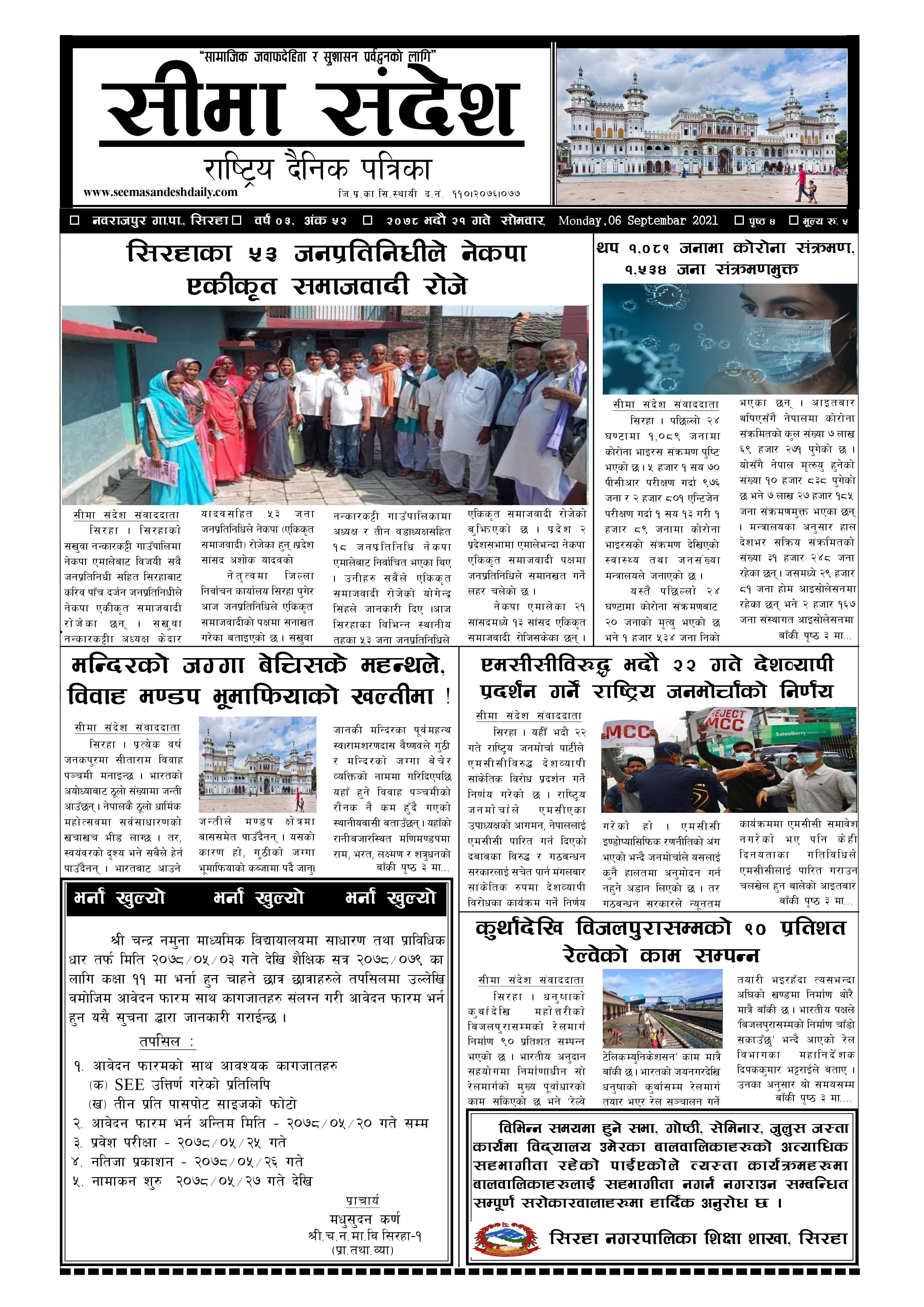 सीमा संदेश राष्ट्रिय दैनिक - 2078-04-17
